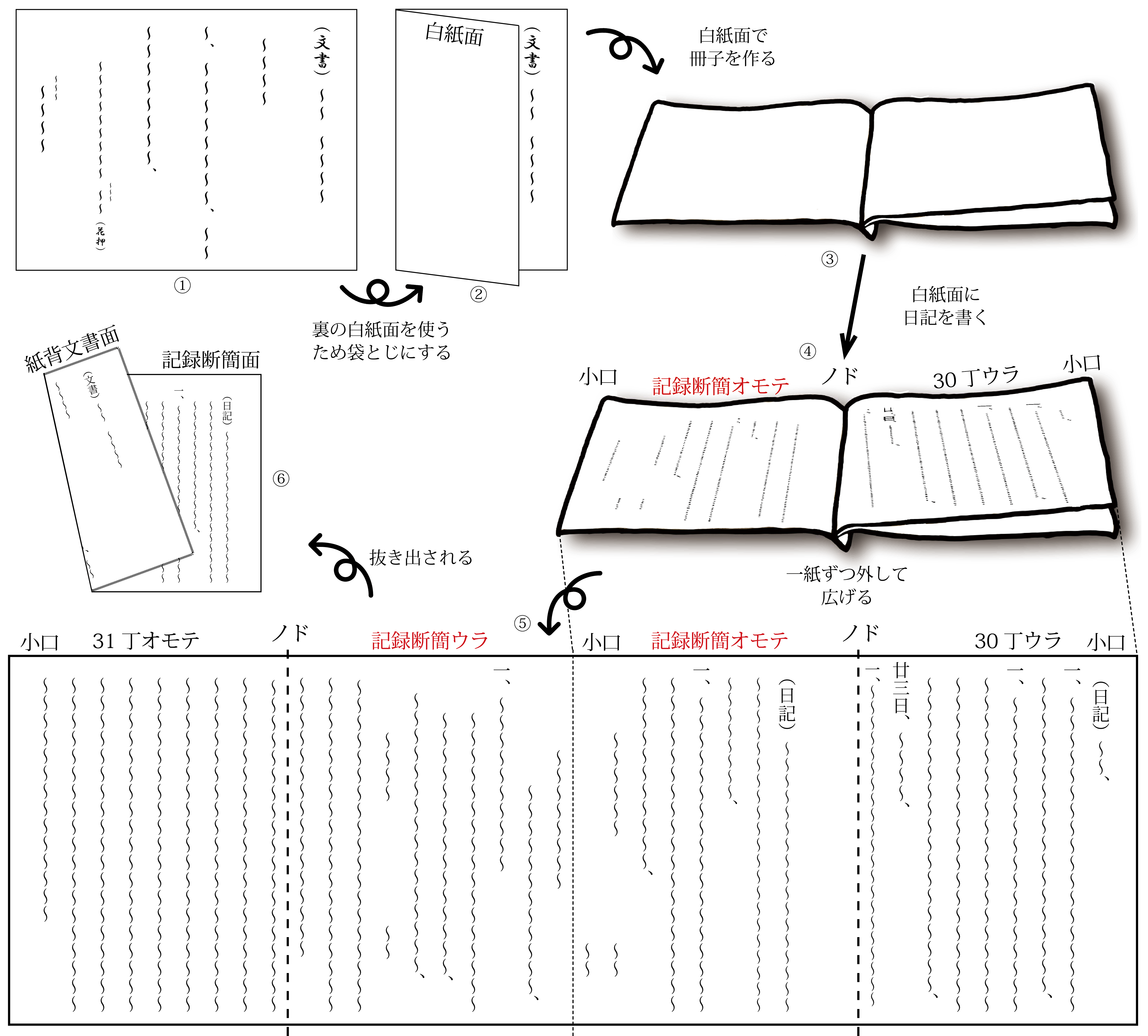 図2 文書が日記の料紙となり、その後日記から抜き出されるイメージ