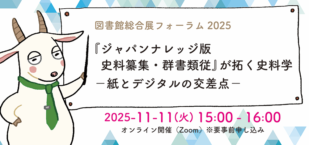 【11/11開催】図書館総合展2025フォーラム『ジャパンナレッジ版 史料纂集・群書類従』が拓く史料学 -紙とデジタルの交差点-』