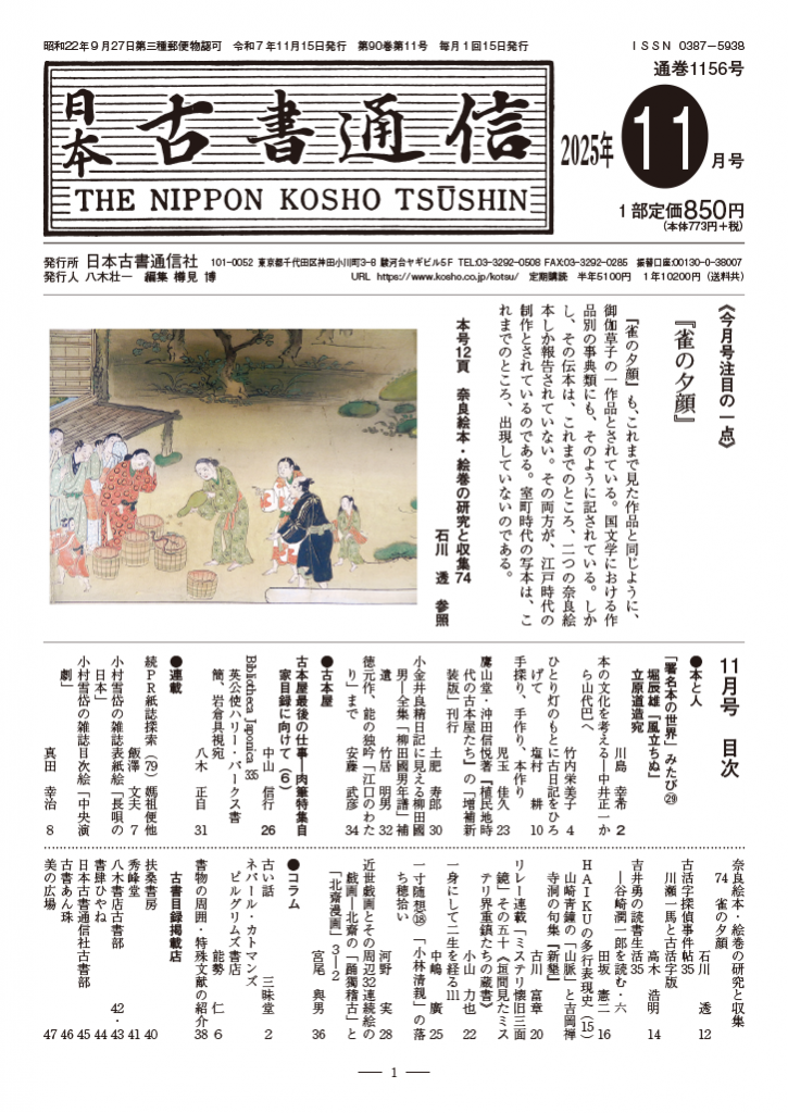 「日本古書通信」11月号(90巻11号)11月15日発売