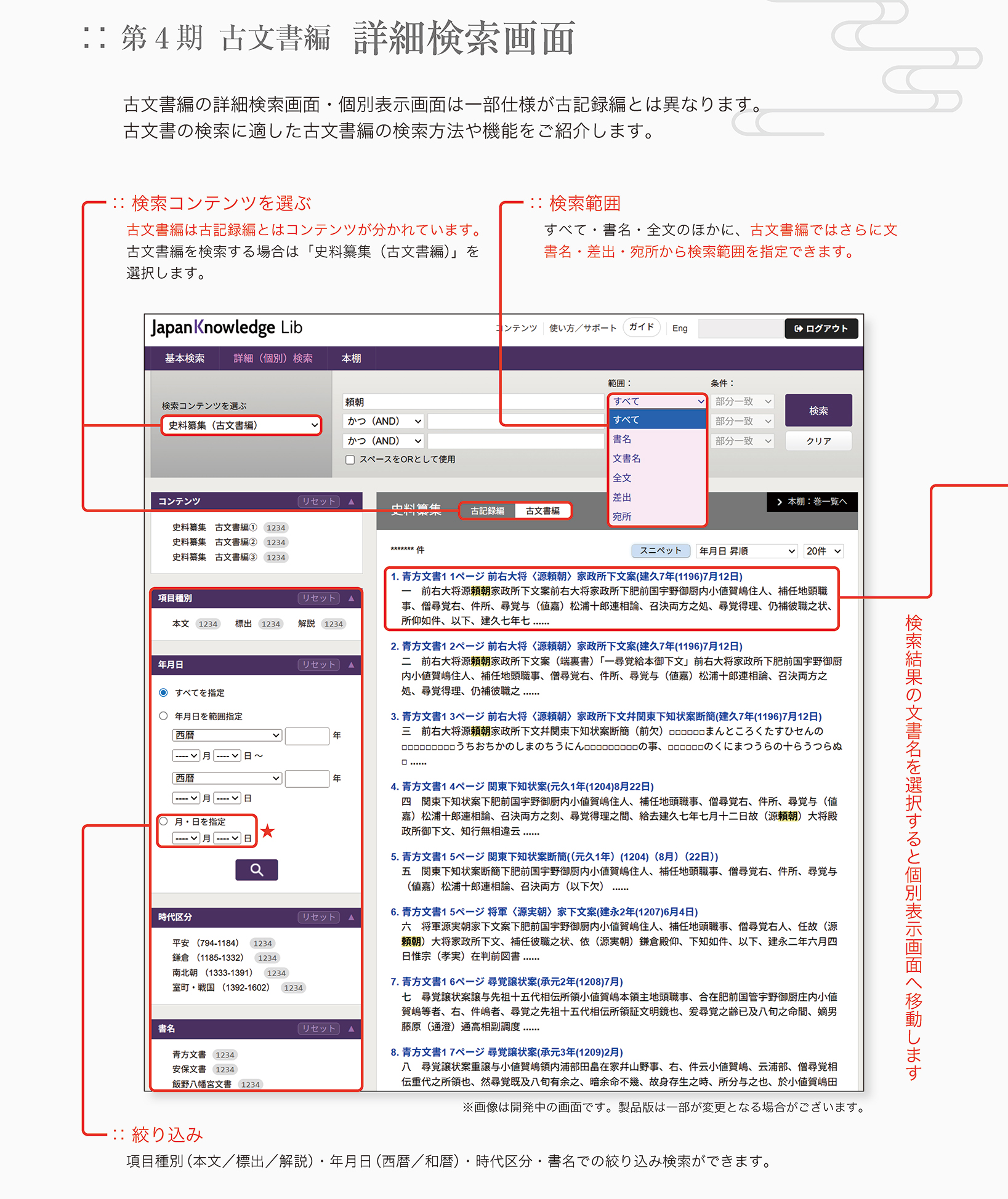 2026年1月の第4期古文書編の配信から、年を指定せず月・日のみで絞り込む機能が追加されます。