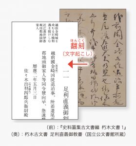 気多神社文書1~3、尊経閣文庫所蔵 石清水文書、石清水八幡宮社家文書、石清水八幡宮文書 外、言継卿記紙背文書1・2、五条家文書、歴代古案1~5、別本歴代古案1~3、近江大原観音寺文書、光明寺文書1・2、西福寺文書